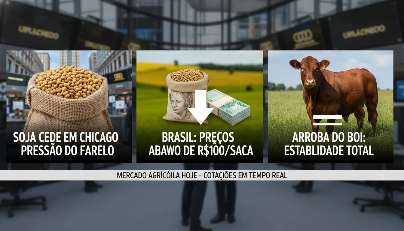 O mercado de soja em Chicago registrou uma queda nos preços, influenciado pela pressão do farelo, enquanto no