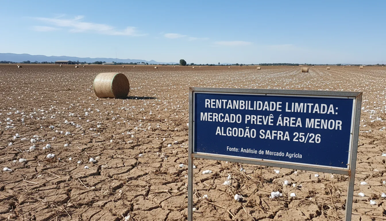 A expectativa para a safra de algodão 2025/2026 é de uma redução na área plantada devido à rentabilidade