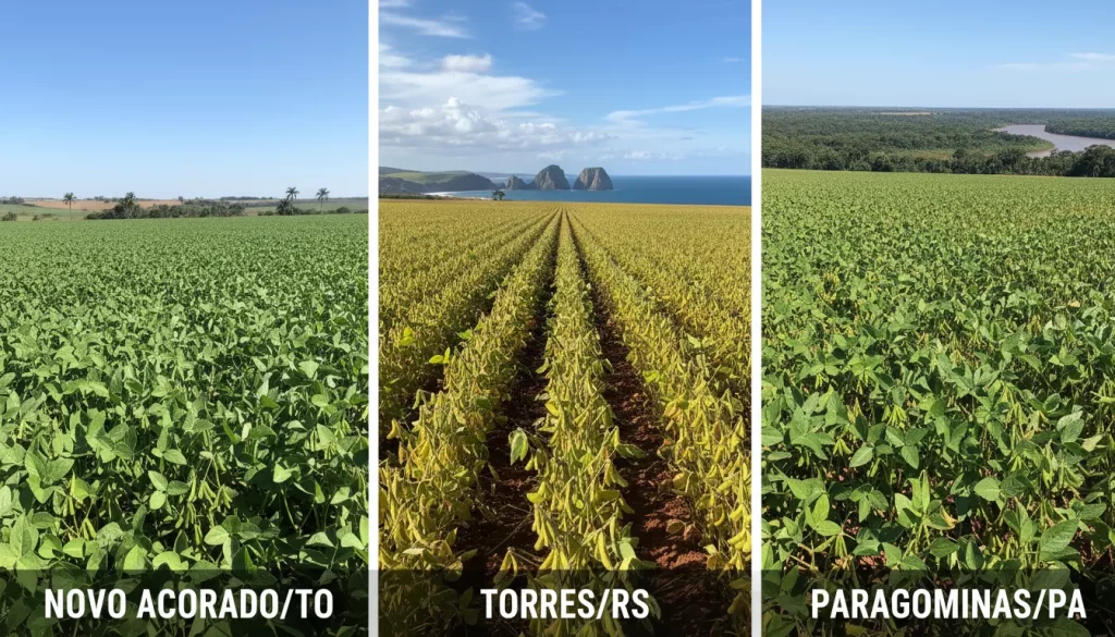 As plantações de soja em Novo Acordo, no Tocantins, Torres, no Rio Grande do Sul, e Paragominas, no Pará, estão apresentando um desenvolvimento satisfatório. A colheita já começou a progredir em várias partes do Brasil, com expectativa de avanço gradual.
