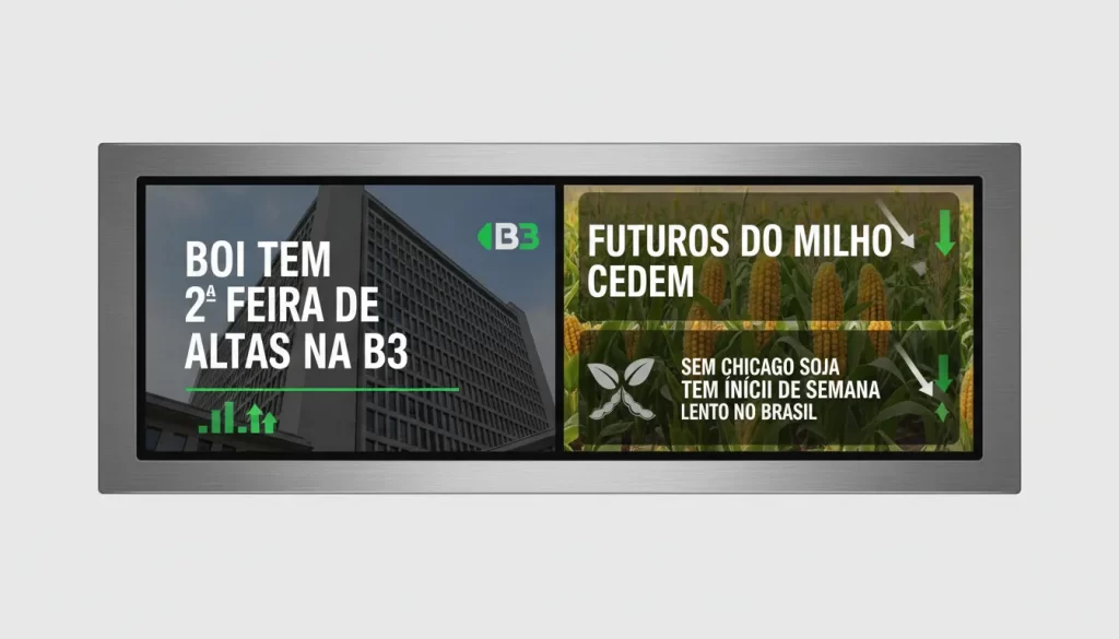 Na segunda-feira, 19 de janeiro de 2026, o mercado de commodities apresentou movimentos distintos. Os preços do boi gordo registraram alta na B3, enquanto os futuros do milho mostraram retração. A ausência das bolsas de Chicago e Nova York, devido ao feriado do Dia de Martin Luther King nos Estados Unidos, resultou em um início de semana mais lento para a soja no Brasil.