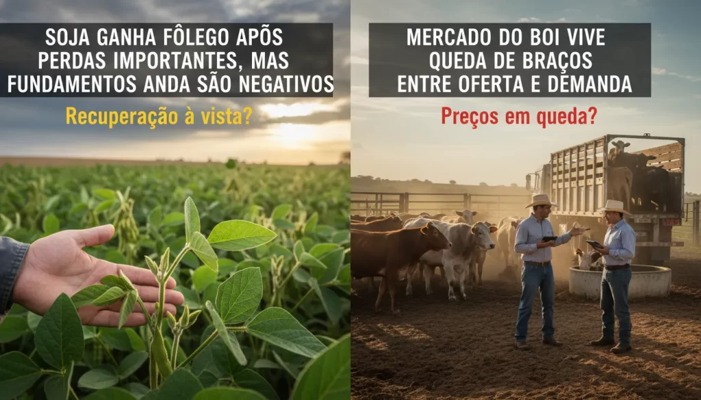 A soja conseguiu recuperar parte das perdas recentes no mercado, mas os fundamentos ainda indicam um cenário desafiador. O mercado do boi, por sua vez, enfrenta um embate contínuo entre oferta e demanda. Esses movimentos foram observados no fechamento do mercado desta quarta-feira, 14 de janeiro de 2026.